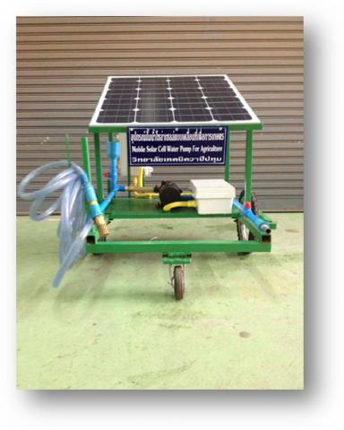 ปั้มน้ำเป็นเครื่องมือที่ใช้ในการเกษตร ซึ่งปั้มน้ำโดยทั่วไปจะใช้ไฟฟ้ากระแสสลับ (AC 220 V) จากบ้านเรือนหรือเติมน้ำมันในการทำให้ปั้มเดินเครื่องได้ และแผงโซล่าเซลล์หรือแผงพลังงานแสงอาทิตย์นั้นสามารถแปลงพลังงานแสงอาทิตย์ให้มาเป็นพลังงานไฟฟ้าได้ จึงได้เกิดเครื่องสูบน้ำพลังงานแสงอาทิตย์เคลื่อนที่เพื่อการเก...