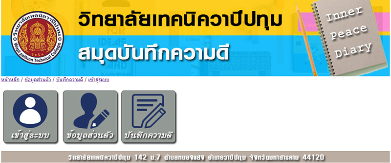จากที่วิทยาลัยเทคนิควาปีปทุม ได้มีโครงการสมุดบันทึกความดีขึ้น เพื่อให้นักเรียน นักศึกษา ได้ตระหนักถึงการทำความดีภายใต้อัตลักษณ์ของวิทยาลัย โดยเชื่อว่าจะเป็นเครื่องมือสร้างคนดีที่มีคุณธรรมครบถ้วน ที่จะได้อยู่ในสังคมอย่างมีความสุขได้ และในการเขียนสมุดบันทึกความดีในรูปแบบกระดาษบ่อยครั้งที่เกิดปัญหาเกี่...