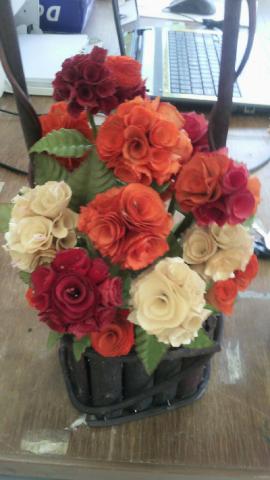 การทำดอกไม้จากเศษไม้ เป็นการเศษไม้ที่แห้งนำมาเหลาให้เป็นเกลียวและจัดเป็นดอกไม้ เพื่อนำมาเป็นของตกแต่งตามที่ทำงานหรือบ้านพัก รวมทั้งการทำเป็นของที่ระลึก เป็นของฝากให้แก่แขกผู้มาเยี่ยมเยือน โดยมีวัตถุประสงค์ของการประดิษฐ์ 1เพื่อนำเศษไม้แห้งมาปรับเปลี่ยนให้มูลค่า 2เพื่อออกแบบสิ่งของใช้จากวัสดุจากธรรมชาติ 3เพื่อเศษไม้แห้งมาทำเป็นของตกแต่งและที่ระลึก