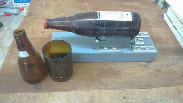 อุปกรณ์ตัวขวดแก้ว เป็นเครื่องมือเพื่อใช้ในการตัดขวดแก้วรูปทรงกลม ทำขึ้นจากเครื่องมือที่ใช้ในการตัดกระจก ใช้งานได้ง่าย สามารถตัดขวดได้ทุกความหนา ทุกขนาด สามารถที่จะใช้ในการประกอบอาชีพ ในการทำขวดประดับ ทำแก้วน้ำที่มาจากขวด หรือการผลิตเพื่อจำหน่ายในอนาคต