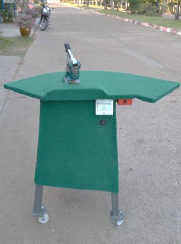 เครื่องปั๊มตานูนอัตโนมัติแบบปรับระดับแรงกดได้ ถูกพัฒนาต่อยอกจากสิ่งประดิษฐ์เครื่องปั๊มตรานูนอิเล็กทรอนิกส์ฯ ที่เคยส่งเข้าประกวดและนำมาใช้งานในปีการศึกษา 2555 โดยพัฒนาปรับปรุงให้สามารถแก้ปัญหาการทำงานของเครื่องรุ่นเดิมและตอบสนองความต้องการของผู้ใช้ที่ต้องการให้เครื่องทำงานอัตโนมัติ เครื่องปั๊มตรานูนอัตโนมัติแบบปรับระดังแรงกดได้ ที่ถูกพัฒนาขึ้นใหม่นี้ สามารถแก้ปัญหาการทำงานของเครื่องรุ่นเดิมคือ ใช้วงล้อที่ติดกับมอเตอร์ดึงวดสริง ทำให้ลดปัญหาการขาดของโซ่ขับในรุ่นเดิม และใช้เกลียวเร่งเป็นตัวปรับระดับความตึงของลวดสริง เพื่อปรับน้ำหนักแรงกดของปั๊มตรานูน รวมทั้งการปรับปรุงให้สามารถใช้งานได้ทั้งแบบทีละแผ่น และทำงานได้ทั้งแบบต่อเนื่องอัตโนมัติ และสามารถใช้แหล่งจ่ายกระแสไฟฟ้าได้ทั้งจากไฟฟ้าตามบ้าน และจากแบตเตอรี่ ทำให้สามารถใช้งานได้ตลอดเวลา