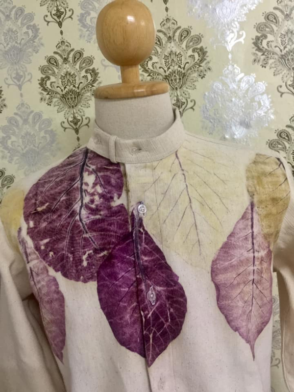 ผู้วิจัยสิ่งประดิษฐ์สนใจการย้อมด้วยสีธรรมชาติซึ่งพบว่านอกจากจะดีต่อสิ่งแวดล้อมแล้ว สีสันที่ได้ยังแปรเปลี่ยนไปตามการใช้ตัวที่ช่วยทำให้สีติดมากขึ้นที่เรียกกันว่าสารช่วยติดสี (Mordant)รวมถึงสภาพอากาศด้วยเช่นกัน ผู้วิจัยเริ่มมองหาสิ่งที่แปลกใหม่แล้วจึงพบว่านอกจากการย้อมสีจากเปลือกไม้แล้ว ใบไม้มีสีสันและลวดลายที่สวยงามเป็นเรื่องที่ท้าทายสร้างความแปลกใหม่ได้อย่างน่าอัศจรรย์จึงหาวิธีการพิมพ์สีและลวดลายจากใบไม้ลงผืนผ้า
