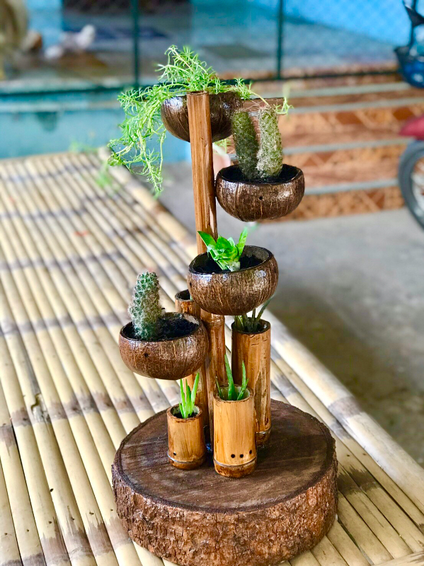 จากการทำสิ่งประดิษฐ์ของคนรุ่นใหม่นี้ คณะผู้จัดทำได้ศึกษาและฝึกปฏิบัติ ตลอดจนการฝึกอบรมเพิ่มเติมจากวิทยากรท้องถิ่น และออกแบบดัดแปลงเพื่อให้ตรงกับความต้องการของตลาด สามารถจำหน่ายเป็นรายได้ระหว่างเรียน จากการสรุปความต้องการของตลาด ผลผลิตจากกะลามะพร้าว มีความต้องการนำไปใช้ที่หลากหลายขึ้น ใช้ประโยชน์ได้มากขึ้น เช่นเป็นของใช้ต่างๆ ชุดตกแต่งบ้าน ชุดตกแต่งสวน สวนหย่อม ซึ่งเป็นที่สนใจของตลาด เป็นชิ้นงานการใช้กะลามะพร้าวร่วมวัสดุอื่น เป็นของที่สามารถนำมาใช้งานได้จริง เพื่อเป็นของใช้ ของประดับตกแต่ง สามารถตั้งได้ทั้งภายในอาคาร และภายนอกอาคาร เพิ่มมูลค่าของชิ้นงานได้มากขึ้น ทำให้เกิดความรู้ความเข้าใจ และมีทักษะในการทำงานประดิษฐ์จากกะลามะพร้าว เป็นการใช้เวลาว่างให้เกิดประโยชน์