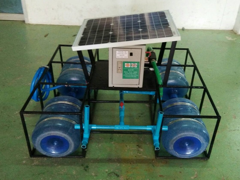 ปัจจุบันปัญหาน้ำของประเทศไทยที่เป็นแหล่งน้ำธรรมชาติหรือแหล่งน้ำที่มีเจ้าของที่เป็นแหล่งน้ำแบบปิด จะมีค่าของออกซิเจนในน้ำต่ำเพราะไม่ได้รับการบำบัดอย่างที่ควรจะเป็นเราจึงคิดค้นทุ่นเป่าน้ำ เพื่อเป่าออกซิเจนลงไปในน้ำด้วยหัวพ่น Ventury Jet ที่ออกแบบไว้ พ่นน้ำและอากาศ เพื่อเพิ่มออกซิเจนลงในน้ำ ทำการบำบัดน้ำเสีย โดยใช้แผงโซล่าเซลล์ที่ปลดระวางแล้วมาเป็นตัวจ่ายพลังงานให้ทุ่นเป่าน้ำเครื่องนี้ น้ำก็จะมีค่าออกซิเจนเพิ่มมากขึ้นโดยที่ไม่ต้องใช้พลังงานสิ้นเปลืองใดๆ เพียงใช้พลังงานแสงอาทิตย์มาบำบัดพลังงานน้ำ