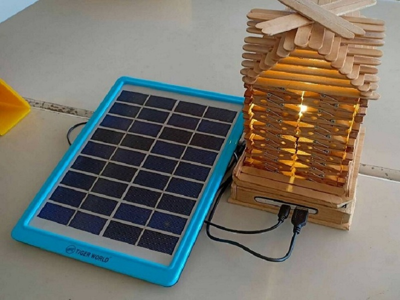 โคมไฟพลังงานแสงอาทิตย์ คิดออกแบบและสร้างขึ้นมาเพื่อให้เกิดประโยชน์ในเวลากลางคืนและช่วยประหยัดค่าไฟฟ้าในบ้าน โดยมีการศึกษาและการนำวัสดุเหลือใช้มาทำให้เกิดประโยชน์มากขึ้น จึงทำสิ่งประดิษฐ์ โคมไฟพลังงานแสงอาทิตย์ นำมาสร้างรายได้ และการใช้เวลาให้เกิดประโยชน์
